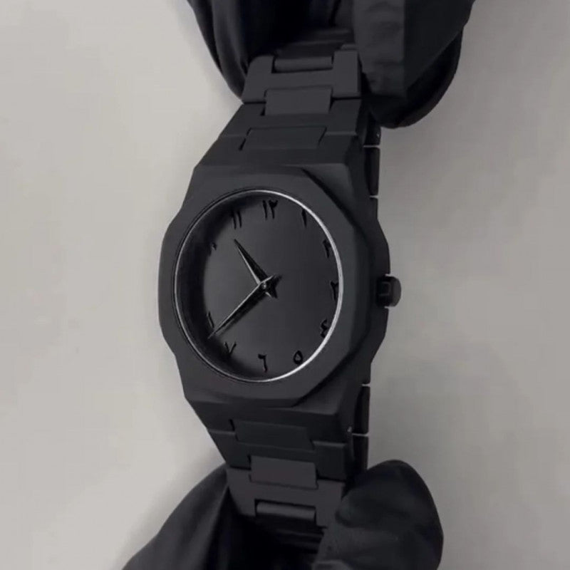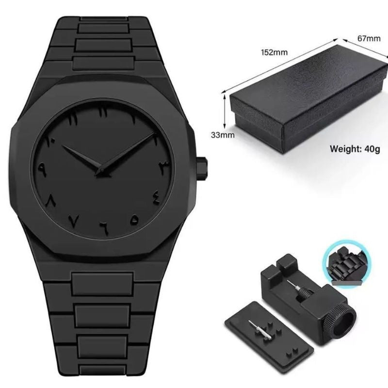 Black Aura Quartz Watch with Arabic Dial for Men can Experience elegance and cultural sophistication. Designed for the modern gentleman who values tradition and style, this luxury timepiece features a bold black design accented by clearly printed Arabic numerals for a distinctive, refined look.